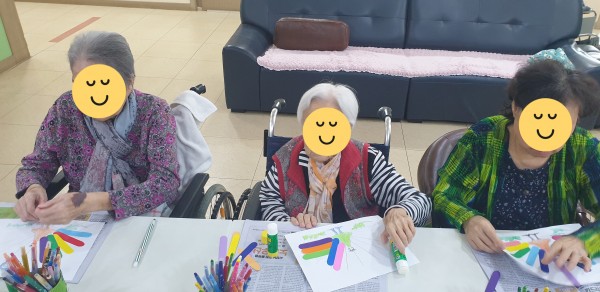 한 어르신께서는 다양한 색깔로 날개를 표현하니 화사한 느낌이 난다며 예쁘다고 하셨습니다.